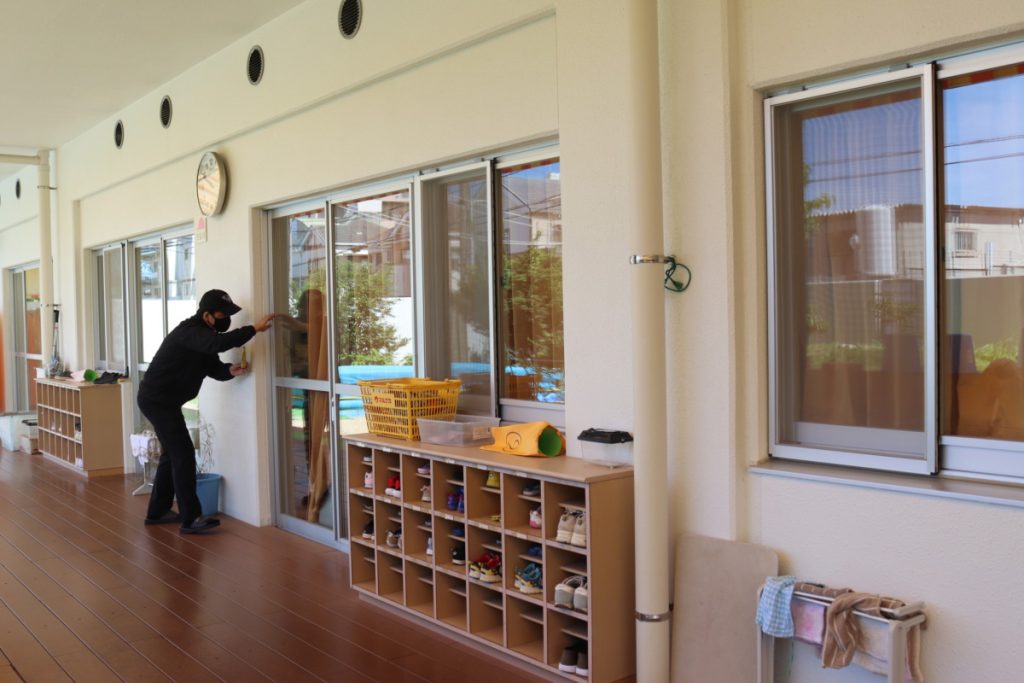 怪しい人が、幼稚園に入って来ました。